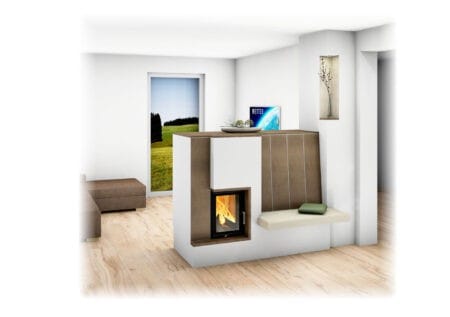 Kachelofen mit Sichtfenster und Bank_1