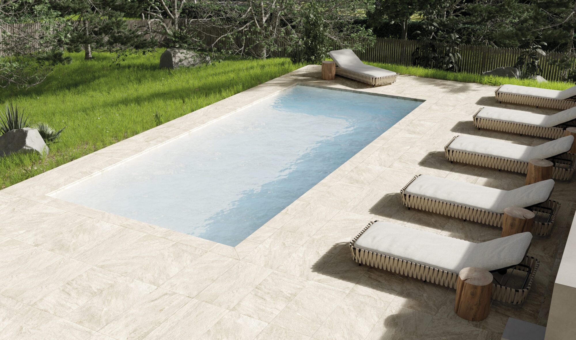 Nicht nur das Format, sondern auch die Textur spielt eine entscheidende Rolle für die Wirkung und Funktionalität von Terrassenplatten. 2025 stehen vor allem strukturierte und rutschhemmende Oberflächen im Fokus, die nicht nur optisch ansprechend sind, sondern auch für mehr Sicherheit sorgen. Gerade in Poolbereichen oder auf Terrassen, die oft nass werden, sind rutschfeste Fliesen mit einer Rutschhemmung von R11 oder höher besonders empfehlenswert.